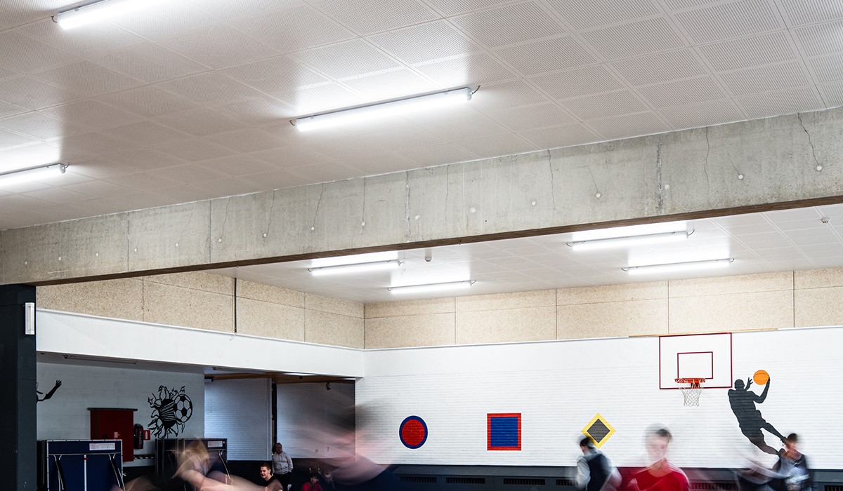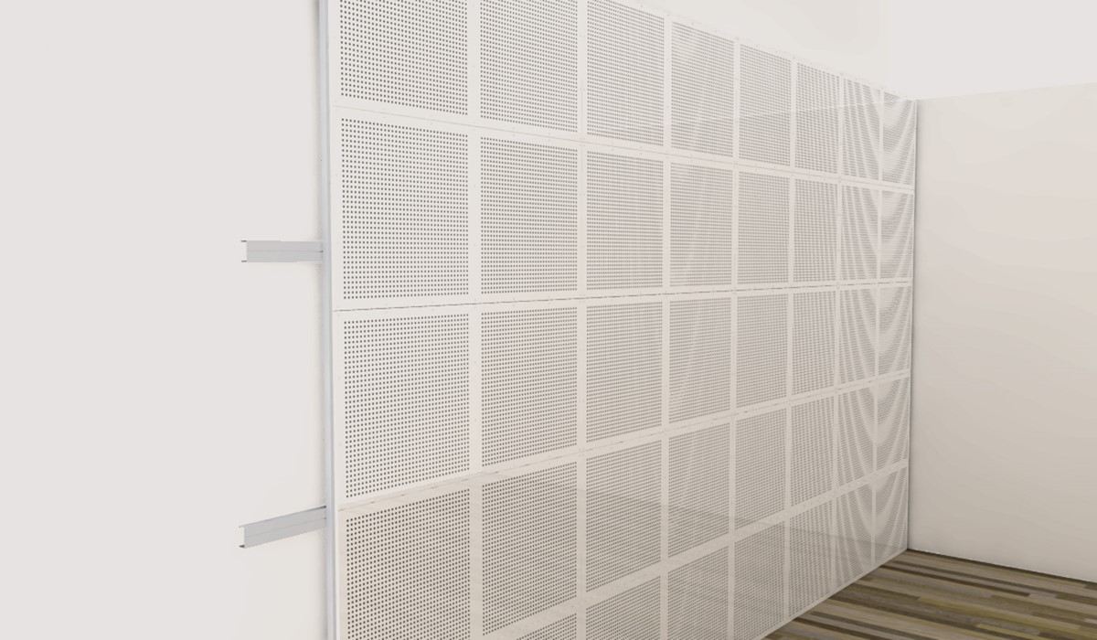 The design of a Contrapanel means that both acoustical and impact-resistant functionality of a wall or ceiling surface is ensured by the panel itself. Therefore, with Contrapanel you are able to meet the requirements for acoustics and strength in one simple installation process. Contrpanel is screw-fixed to a CD2 furring system using white-painted screws. No filling or painting required.