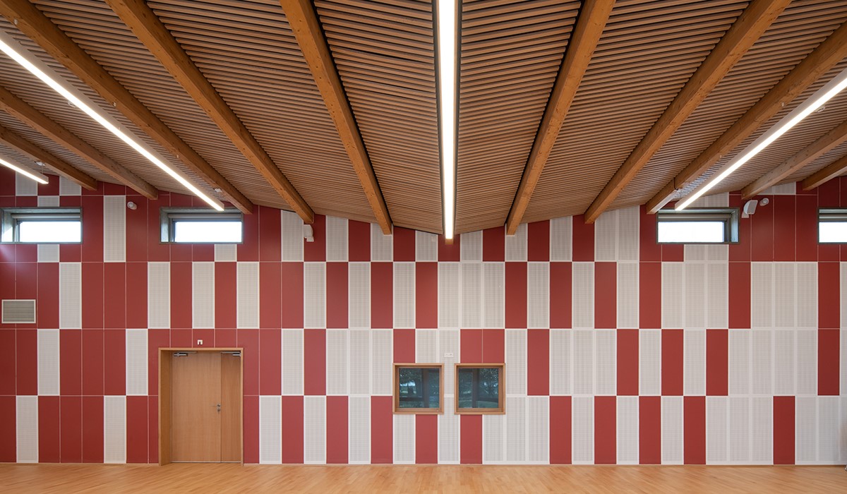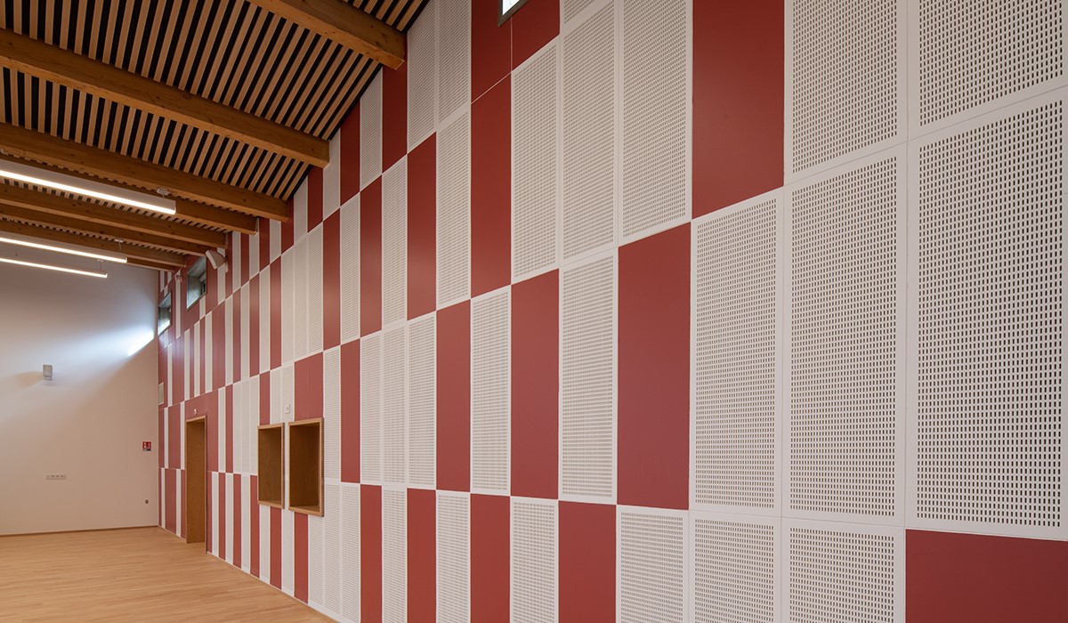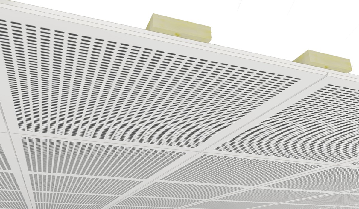 The flexibility of gypsum and the wide range of sizes make Tectopanel a highly versatile acoustic solution. You can install Tectopanel on ceiling or walls. You can curve the perforated panels. And you can apply colours of your choice on site.