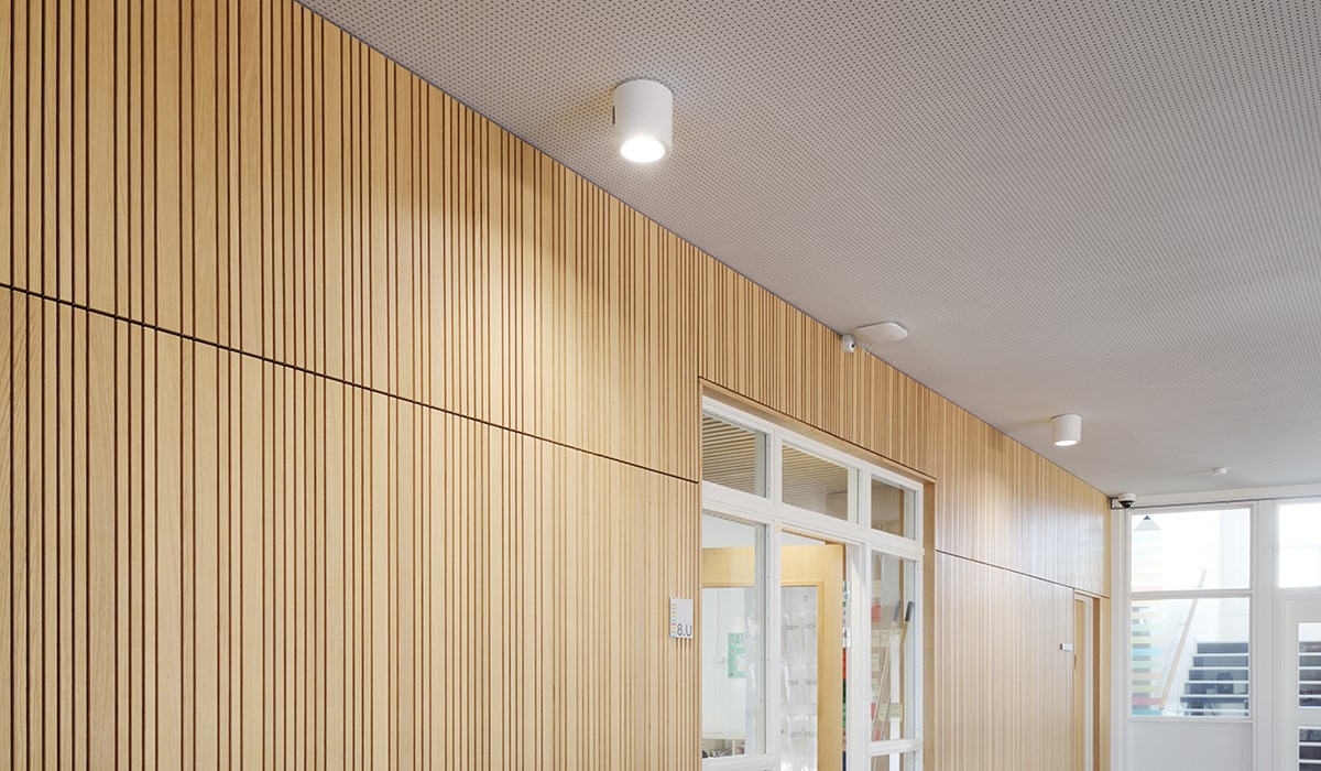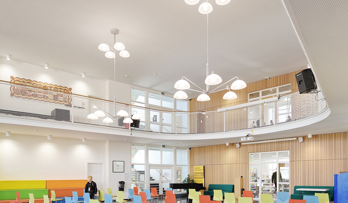 It was especially important to secure a healthy and comfortable indoor climate with sound absorbing elements on ceilings and walls.