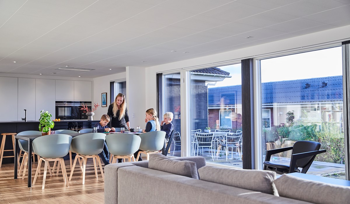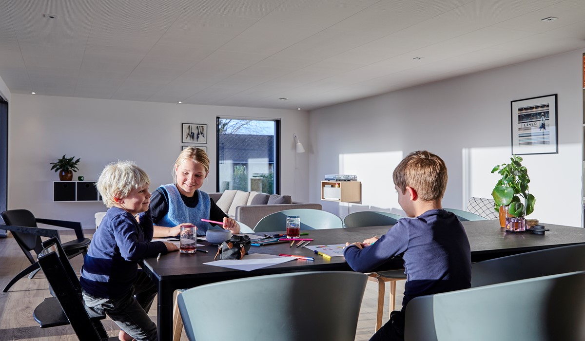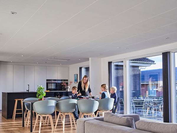 An acoustical ceiling is therefore a necessity to promote a healthy and comfortable indoor climate with room for the entire family. With DANOloft® they are garanteed a bright contemporary ceiling with superb acoustics.