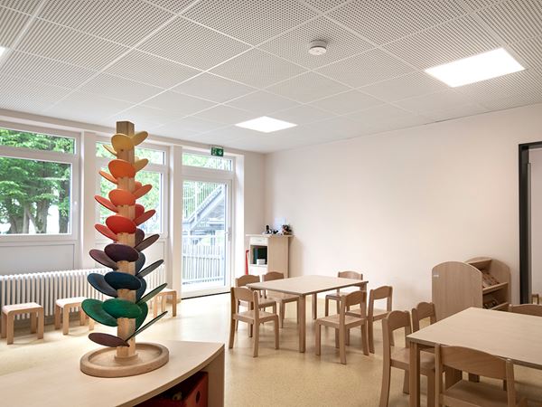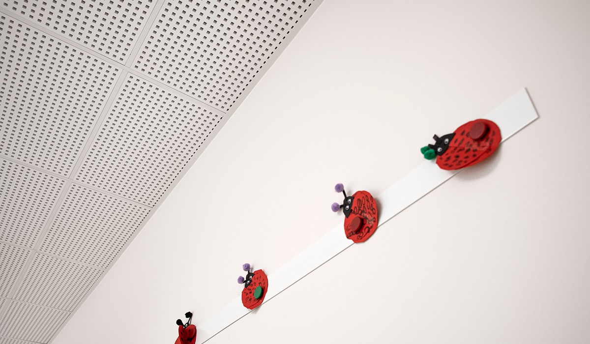 A good acoustic environment is essential for children to concentrate and learn. Especially in kindergartens. When children are learning to speak, it is important that they hear the nursery teacher correctly. Acoustic ceilings are therefore an important part of the interior design when deciding on acoustic design.