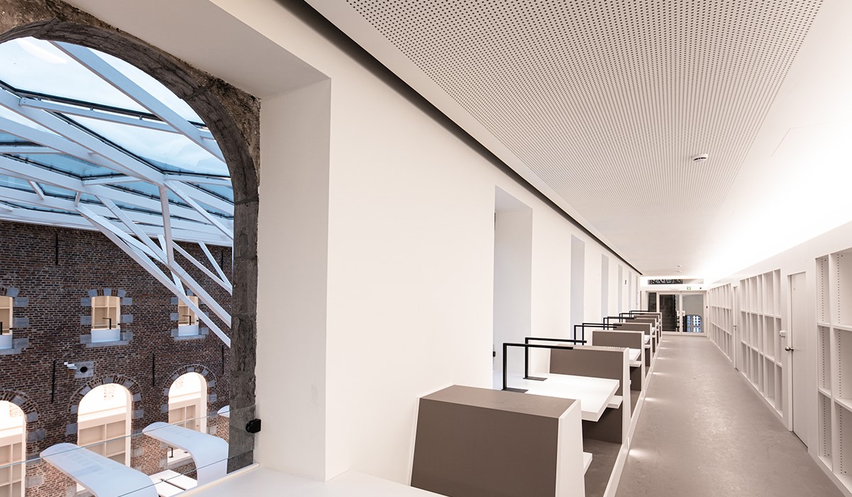 An ancient convent in Mons has recently undergone a major restoration to house the library of the University of Mons. The architects faced a challenging task of integrating modern technologies and materials while preserving and respecting the heritage of the 17th century architecture.