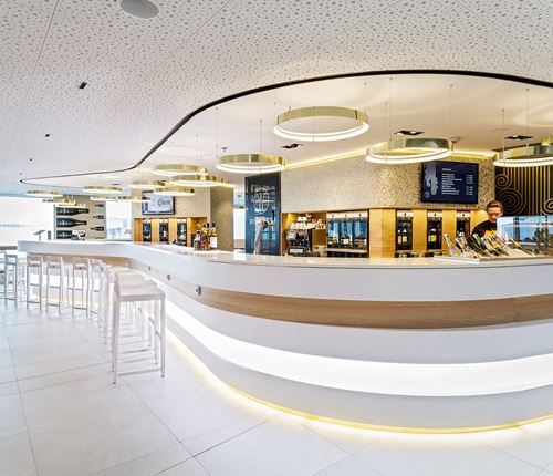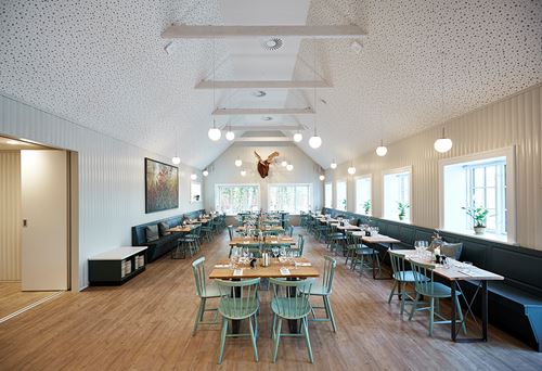 Acoustic ceiling with a playful, organic-like look brings comfort and well-being to guests at Hotel Fårup, Denmark.