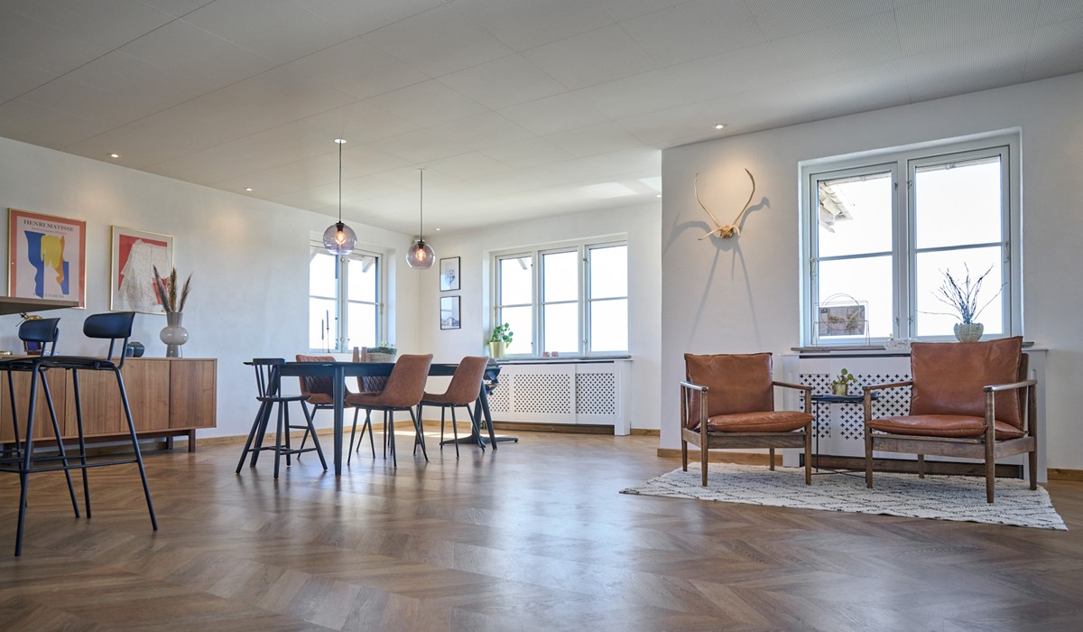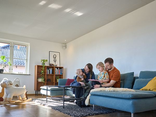 When renovating their 1950s home, the Hørby family from Frederikshavn in northern Denmark chose to focus on good acoustics without compromising on the aesthetic expression and thereby beautiful design, which they experience with the gypsum acoustic tiles from Knauf DANOLINE: DANOloft®.