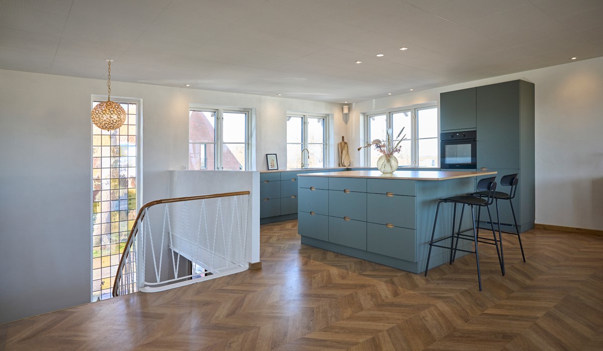 In a former home, the Hørby family had experienced noise in the heart of the house; the kitchen-dining area. That is why it was a big priority for the family to create a kitchen-dining area where there was room for play, cooking, talking, socializing with friends, and other activities as well without losing the calmness and the cozy atmosphere. With DANOloft®, the family has now created space for both family and good acoustics in all the rooms of the home.