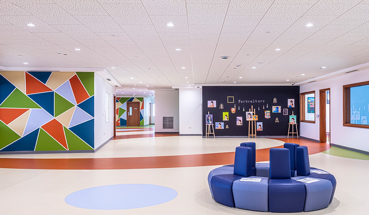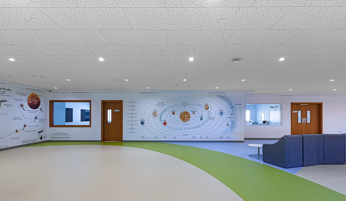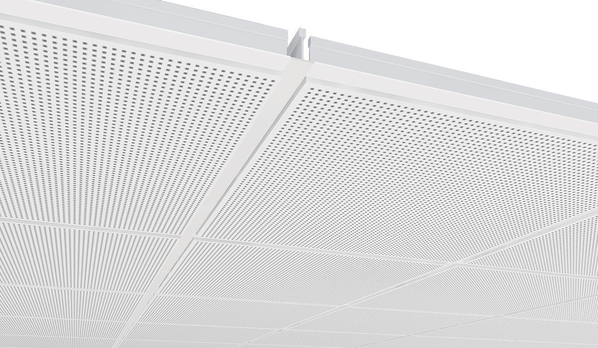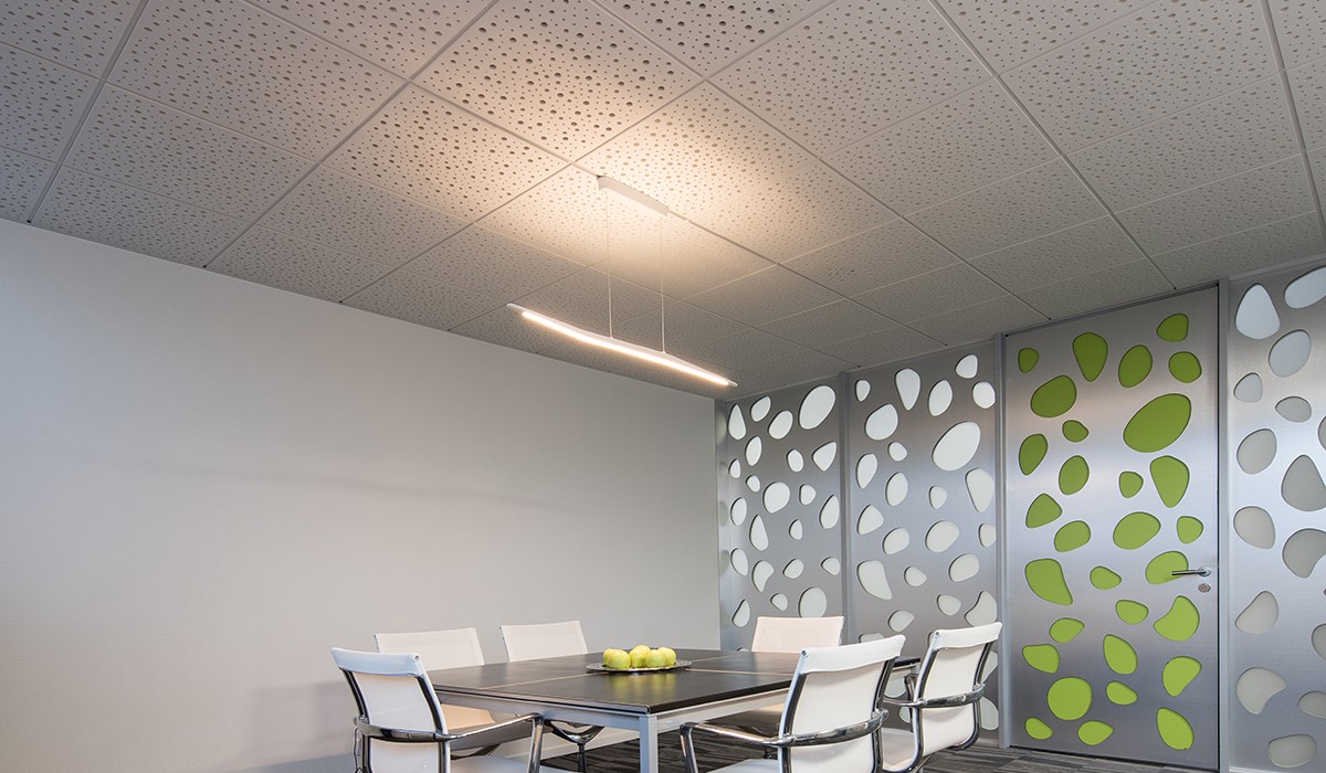 The acoustical tiles are designed with a series of Unity perforation designs. The Unity perforations go all the way to the edge of the tile. This offers top acoustic performance and a calm, contemporary ceiling look.