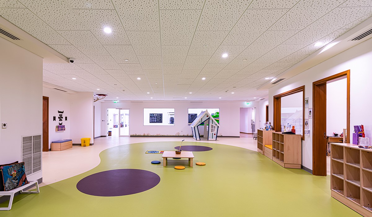 Made of robust perforated gypsum, Belgravia Unity ceiling tiles maintain their high quality during the entire service life. One Belgravia Unity acoustic tile consists of up to 30% recycled gypsum, and the acoustic tiles can be repainted without impact on the sound absorption of the tiles. Belgravia Unity acoustical tiles are recyclable and can be used in the production of new gypsum tiles and boards. Gypsum as a material is a safe material (a high fire class), which promotes an healthy indoor climate (certified with the Danish Indoor Climate Label).