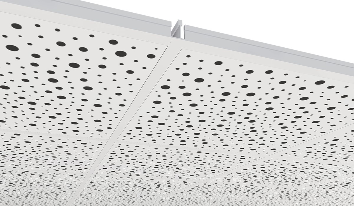 A traditional lay-in tile with a straight edge A is one of the most common tiles for false ceilings. With Plaza Unity, we have introduced a new level of design quality for this widespread acoustic ceiling. A small 1.5mm groove on front of the tile lets the T-grid "sink" into the tile. This leaves the ceiling surface much more simple and undisturbed. The new edge also has a functional, cost-saving advantage, as it is faster to adjust the tiles in the grid.